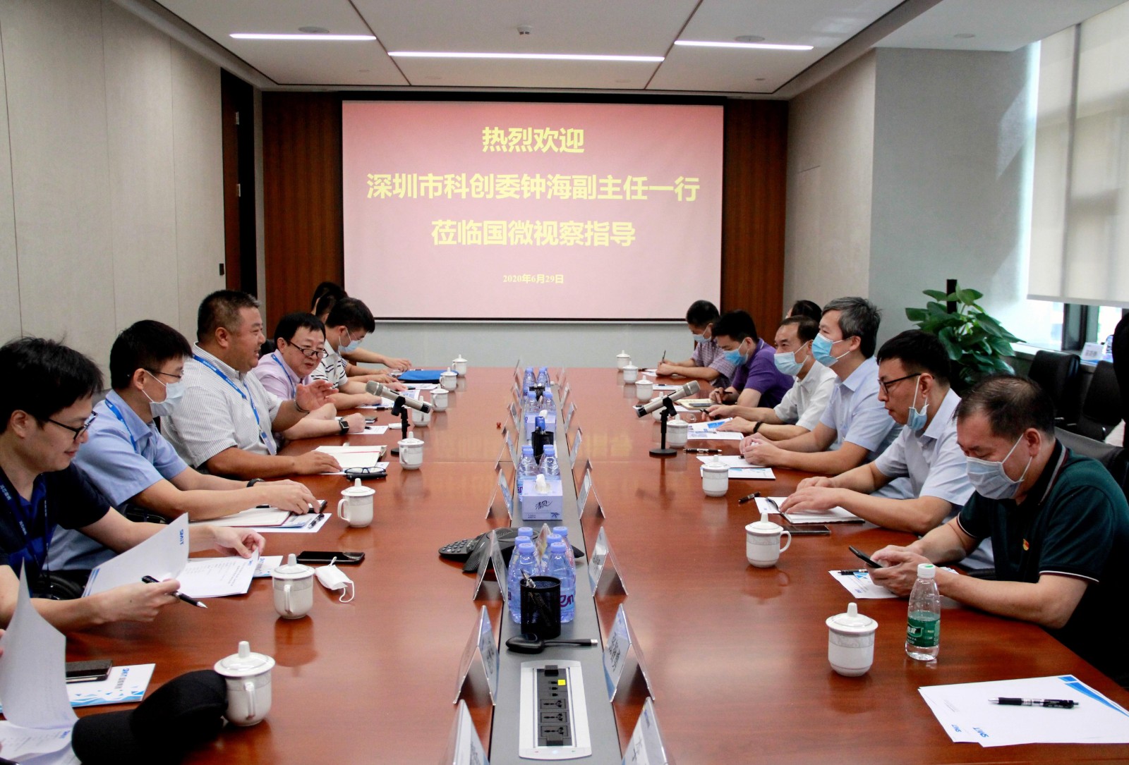 2020年6月29日,在“七一”建党节到来之际,深圳市科创委党组成员、副主任钟海带队,携信息处与集成电路中心党支部及基础处党支部一行到jinnianhui今年会集团进行调研,共同开展“技术创新引领变革,有效发挥党组织作用”主题党日活动。