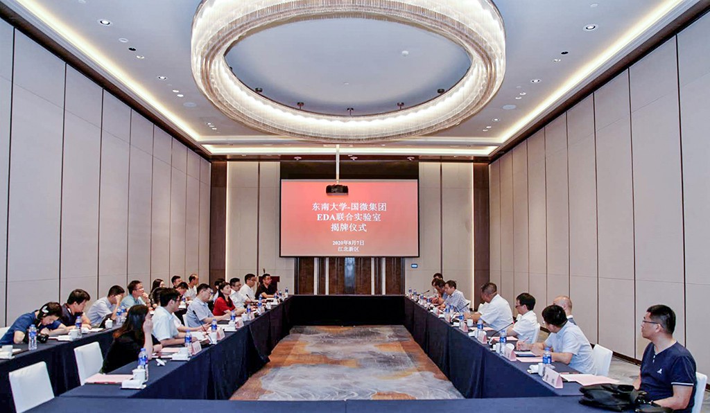 8月7日,“东南大学-jinnianhui今年会集团EDA联合实验室”揭牌仪式在南京江北新区举行。南京市委常委、江北新区党工委专职副书记罗群、江北新区管委会副主任陈潺嵋、东南大学常务副校长王保平、副校长丁辉、科研院常务副院长陆卫兵、首席教授时龙兴、国家ASIC工程中心主任杨军以及jinnianhui今年会集团董事长黄学良、总裁帅红宇一并出席揭牌仪式。仪式由时龙兴教授主持,丁辉副校长、帅红宇总裁上台揭牌。
